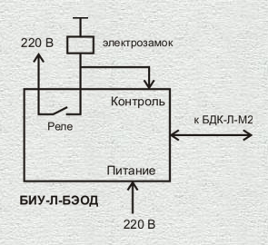 Блок управления БИУ-Л-БЭОД обеспечивает: - дистанционное включение (выключение) реле управления внешнего электрозамка по команде диспетчера;