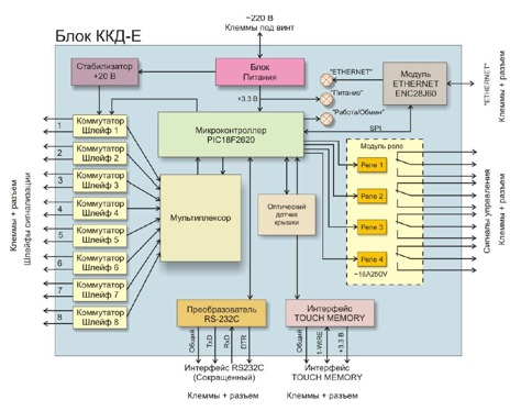 - передача по запросу текущих состояний каждого из восьми шлейфов по интерфейсу Ethernet;