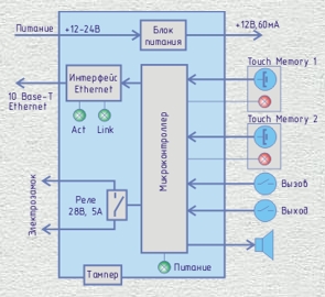- гальваническое разделение цепей реле управления замком и Ethernet.