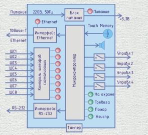 - передача по запросу текущих состояний каждого из восьми шлейфов по интерфейсу «Ethernet»;