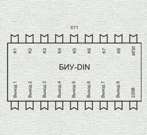 - 8 выходов управления 220 В; 50 Гц; 0,1 А