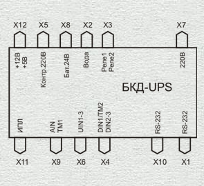| X8 | Вход для подключения аккумуляторов 2х12 В для резервного питания | Бат.24В |