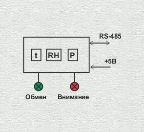 Датчик имеет три канала измерения: температуры, относительной влажности и атмосферного давления окружающего воздуха. Все сенсоры имеют цифровые интерфейсы для считывания показаний. Для измерения температуры используется цифровой преобразователь температуры, время преобразования не превышает одной секунды. Для измерения влажности используется емкостной полимерный сенсор с дополнительным каналом измерения температуры для корректировки показаний сенсора. Время преобразования значения влажности не превышает 10 секунд. Для измерения атмосферного давления используется пъезорезистивный сенсор с защитным слоем водоустойчивого силиконового геля. Этот сенсор имеет дополнительный канал измерения температуры для коррекции значения давления по температуре в соответствии с расчетным алгоритмом. Время преобразования не превышает десятой доли секунды. Электропитание 5В поступает на датчик по отдельной линии от модуля индикации ПАСКАЛЬ-И. Данные датчика периодически считывает модуль индикации по интерфейсу RS-485. На передней стороне корпуса датчика имеются светодиодные индикаторы: зеленый «Обмен» - подача напряжения питания и обмен по интерфейсу с модулем индикации; красный «Внимание» - обрыв или замыкание линии связи, не опроса датчика, неисправность датчика. Исполнения датчиков Паскаль-СТ: - датчик T/RH/P - сенсоры температуры, влажности и давления;