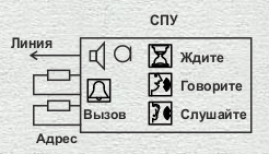 Салонное переговорное устройство СПУ системы оповещения пассажиров электропоезда выполнено в виде специализированного адресного переговорного устройства и предназначено для выполнения громкоговорящей голосовой связи между пассажиром и машинистом электропоезда. СПУ устанавливают по 3-4 шт. во всех салонах вагонов электропоезда.