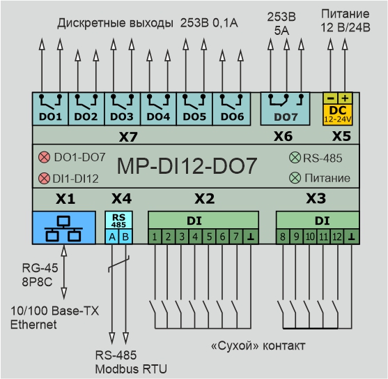 - Количество дискретных входов «сухой контакт» 12 шт.